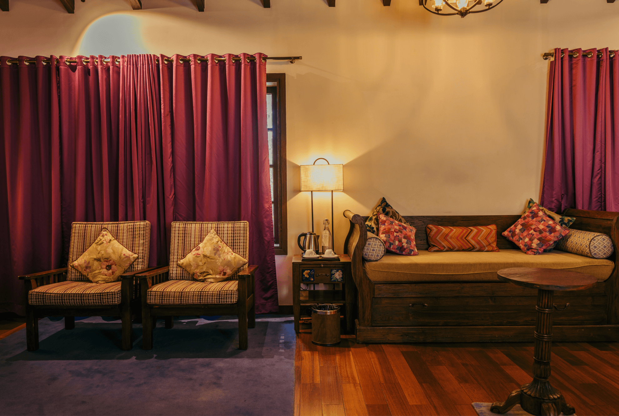 The Neelakurinji Suite, spanning 900 square feet, offers an unparalleled luxury experience perfect for family vacations. Secluded from the other suites, this suite features a spacious living area, two elegant bedrooms with attached bathrooms, and a private deck with an outdoor Jacuzzi for ultimate relaxation.